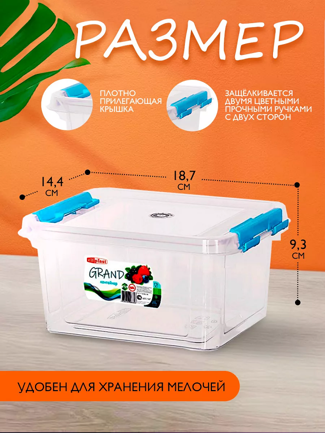 Контейнер elfplast "Grand" для хранения пластиковый с крышкой 1 л, (прозрачный) 546