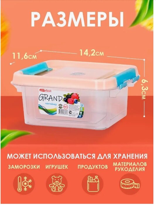 Контейнер elfplast "Grand" (прозрачный, прямоугольный) 0,5 л 14.2х11.6х6.3 см 544