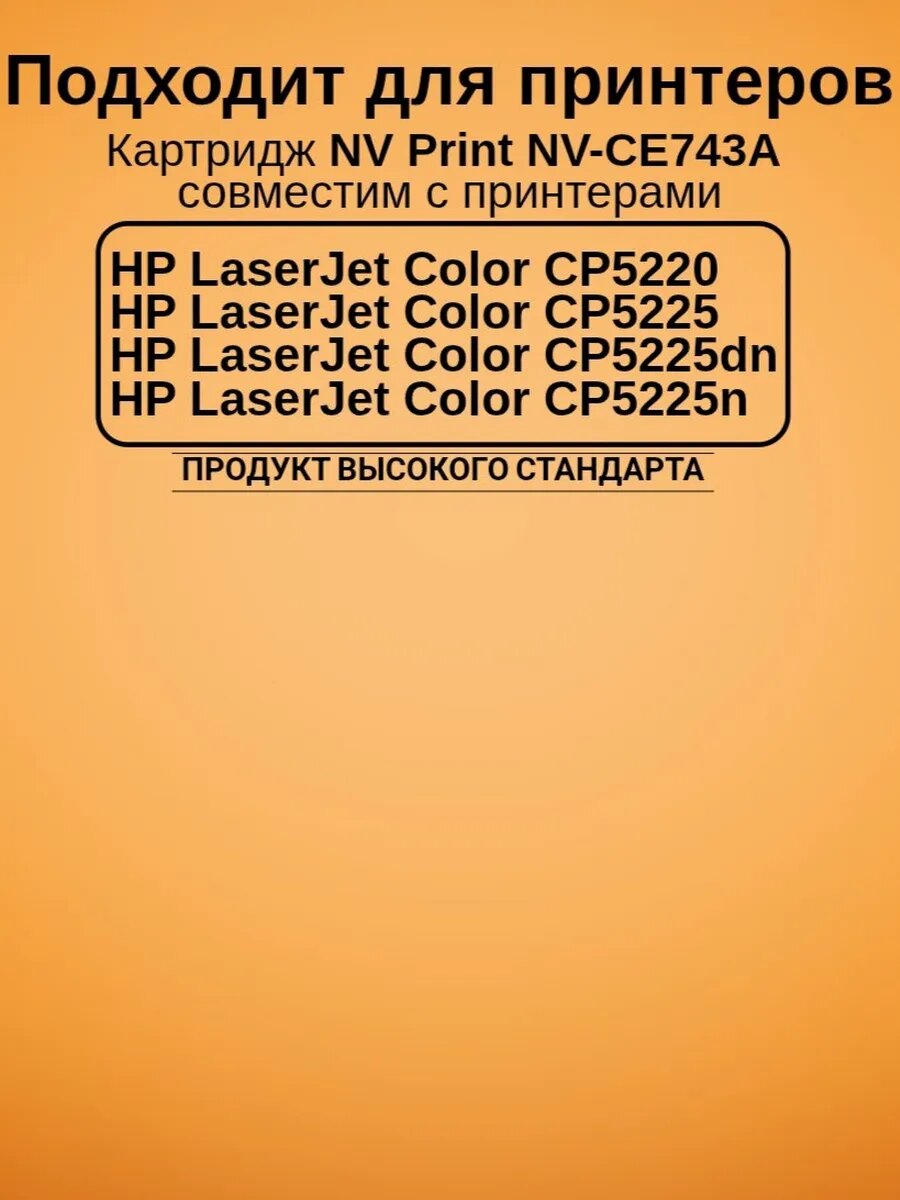 Картридж лазерный NV PRINT (NV-CE743A) для HP CP5220/CP5225/CP5225dn/CP5225n, пурпурный, ресурс 7300 страниц
