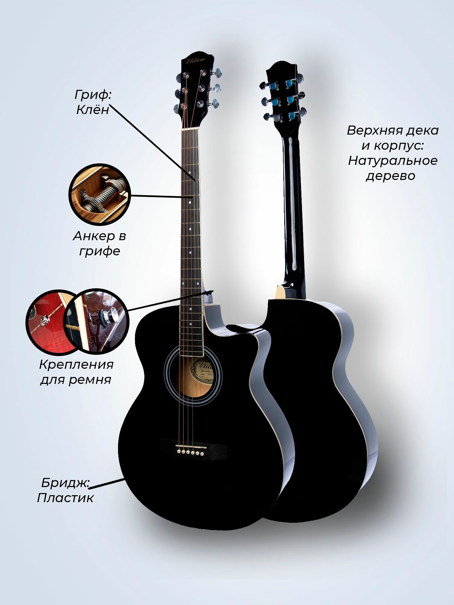 СохранитьГитара акустическая 40" Чёрная (Инструмент начинающего музыканта, Elitaro E4010 BK) интересное: