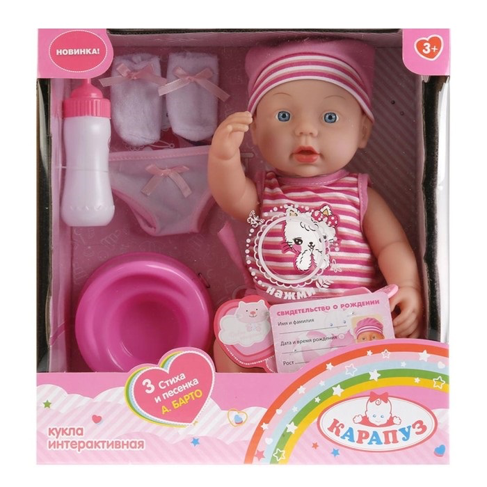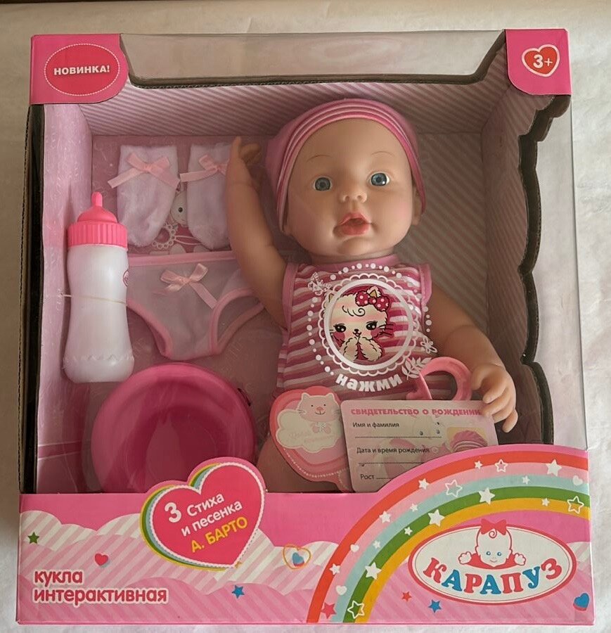 Ниже Вы можете прочитать отзывы на Интерактивная кукла "Карапуз", озвученная, пластик, 36см, 251-L-RU, розовый, ознакомится с подробными характеристиками, посмотреть интересные обзоры и фотографии на Интерактивная кукла "Карапуз", озвученная, пластик, 36см, 251-L-RU, розовый.
