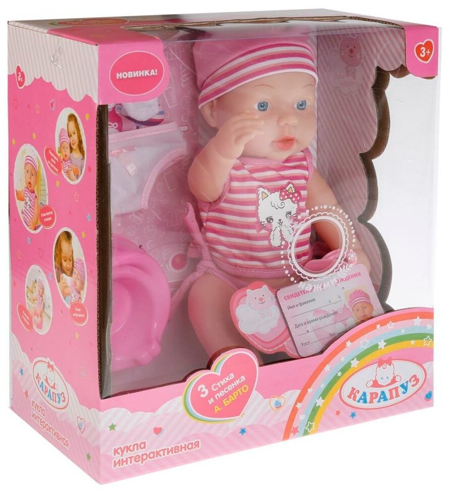 Интерактивная кукла "Карапуз", озвученная, пластик, 36см, 251-L-RU, розовый интересное: