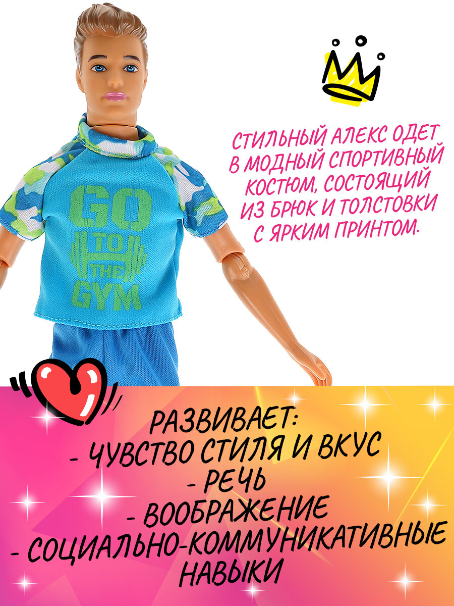Шарнирная кукла друг Софии Алекс Спортсмен, 29 см, ТМ Карапуз