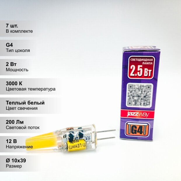 (7 шт.) Светодиодная лампочка Jazzway G4 2.5Вт 12B 5500K