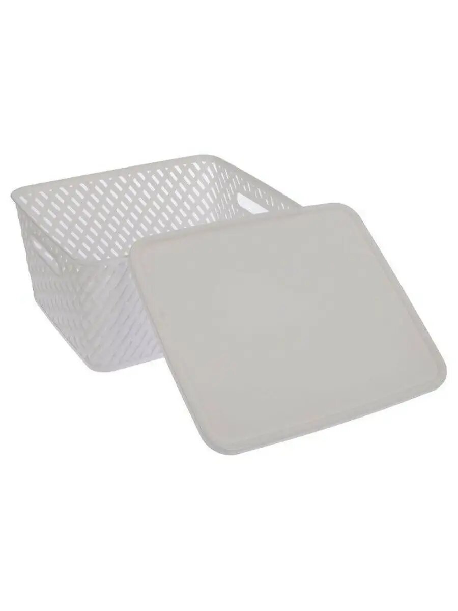 Корзина для хранения с крышкой "Плетёнка", 35x29x17.5 см, цвет белый