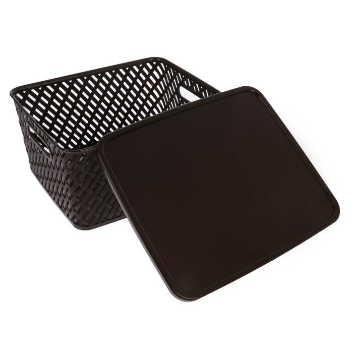 Корзина для хранения с крышкой "Плетёнка", 35x29x17.5 см, цвет коричневый