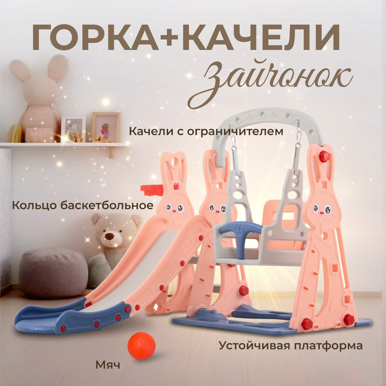 Горка + качели "Зайчонок" PS-042-О оранжевый