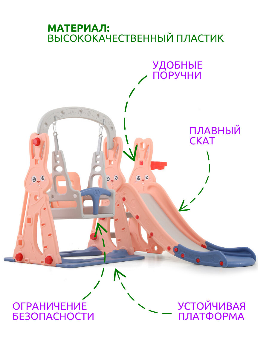 Горка Perfetto sport PS-042 "Зайчонок", для дома и улицы, с баскетбольным кольцом интересное: