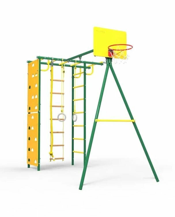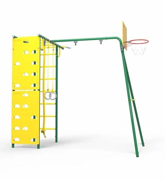 | В комплекте | баскетбольное кольцо, веревочная лестница, гимнастические кольца, канат, рукоход, скалолазная стенка, турник |