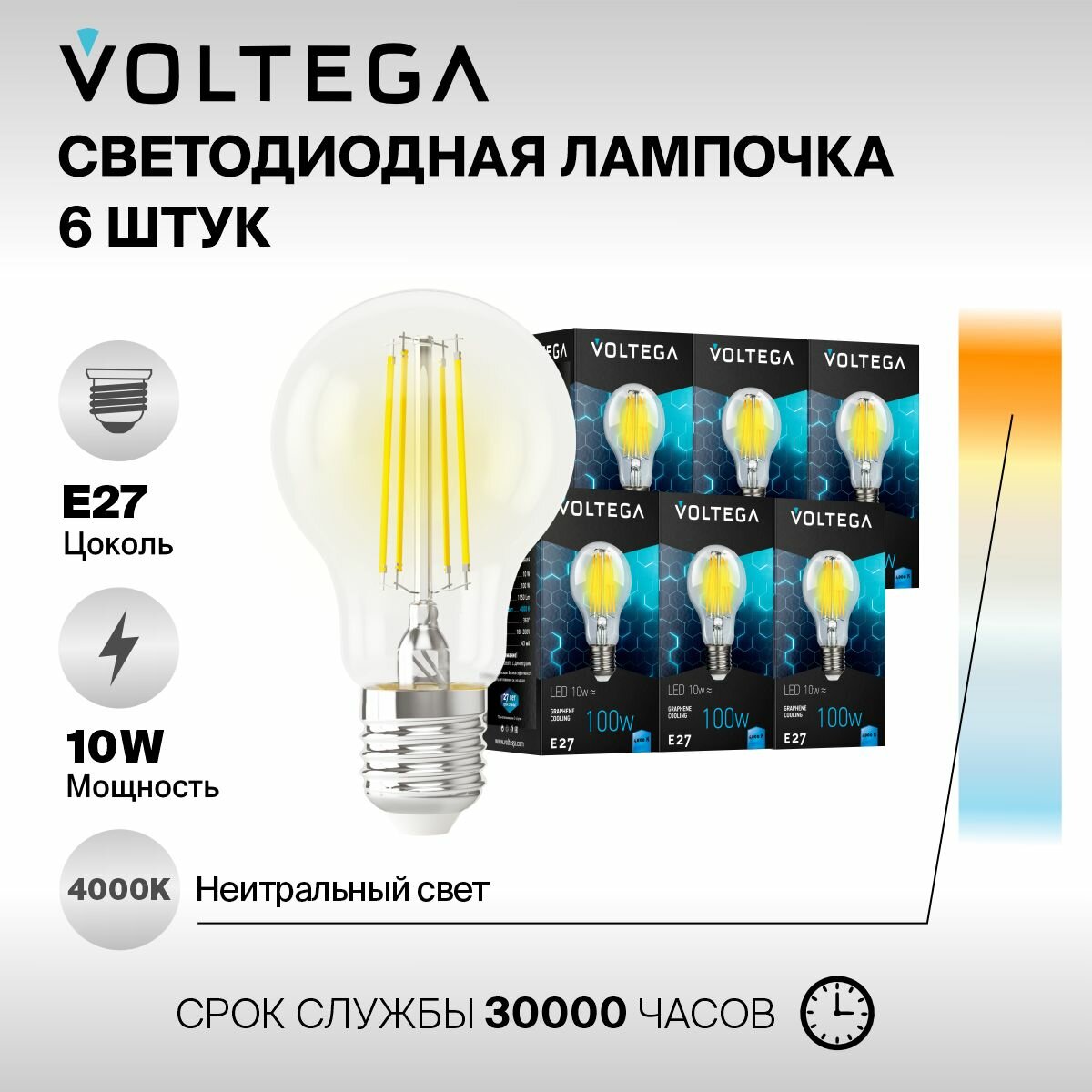 Купить Лампочка светодиодная E27 форма груши 10W нейтральный белый свет Voltega Crystal Graphene A60 4000K упаковка 6 шт.