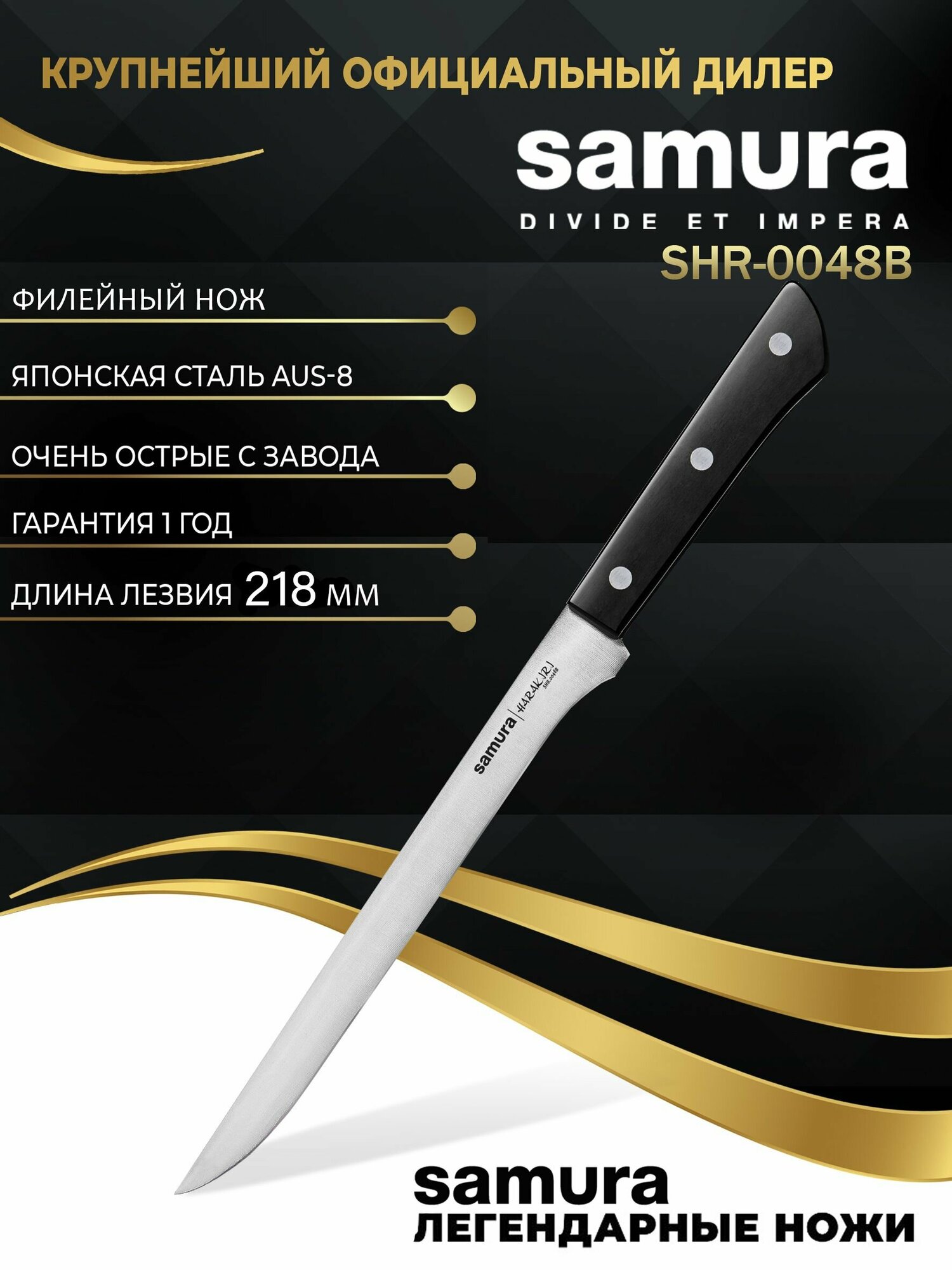 СохранитьНож кухонный Samura HARAKIRI, филейный (SHR-0048B) интересное: