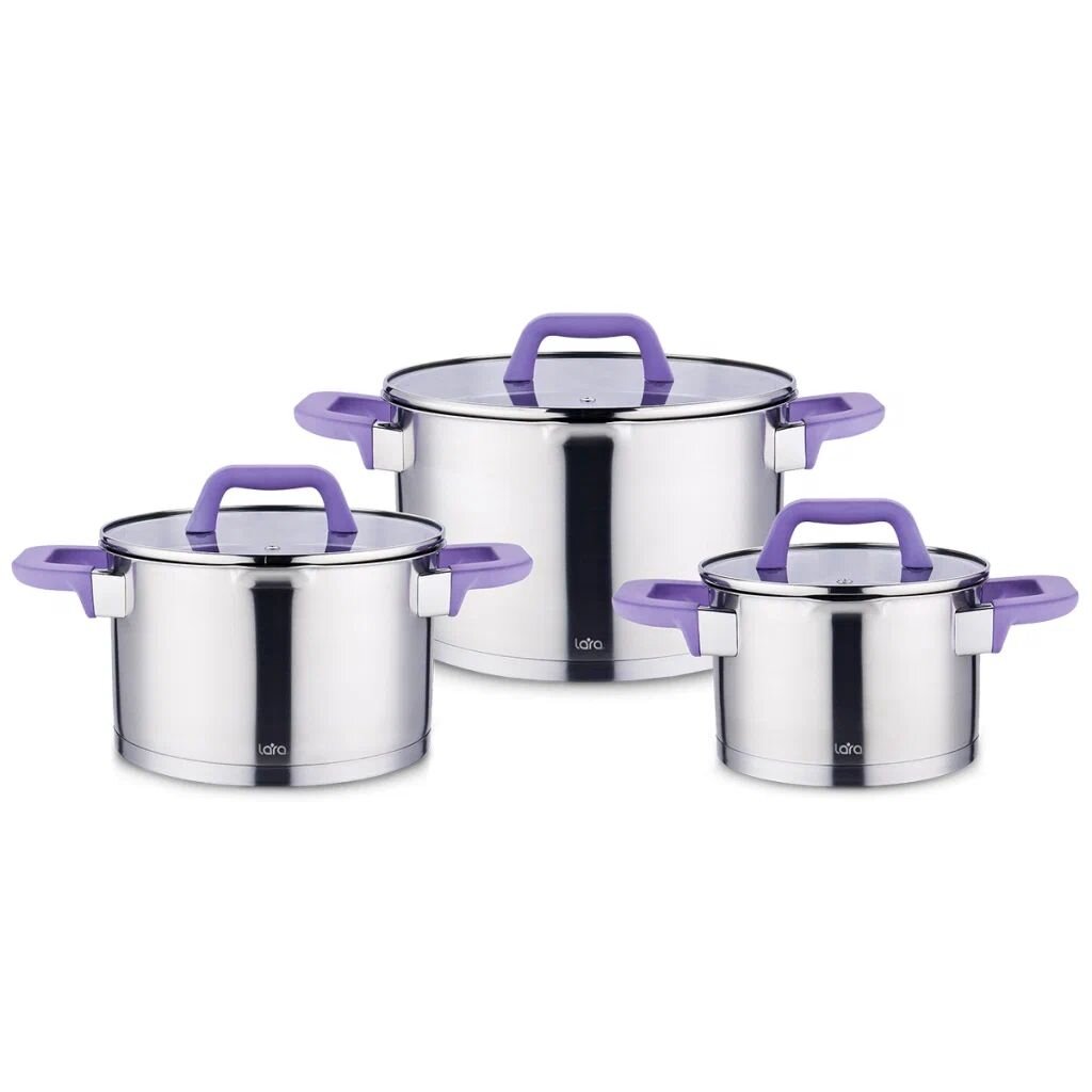 LR02-80 Набор посуды LARA Standart (1.5л + 2.7л + 5.2л) капсулированное индукционное дно, крышки