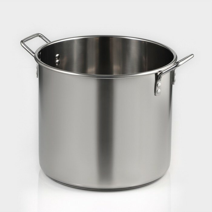 Кастрюля «Общепит», d=30 см, h=23 см, 15 л, сварная, с клёпаными ручками, металлическая крышка, цвет серебряный