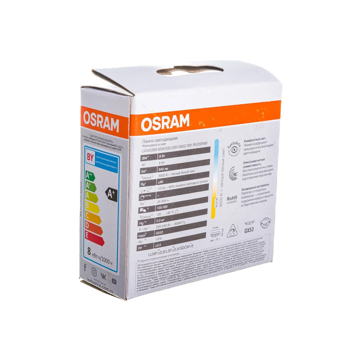 Лампа LEDVANCE OSRAM, 8Вт, GX53, 4000к, дневной белый свет, 220В