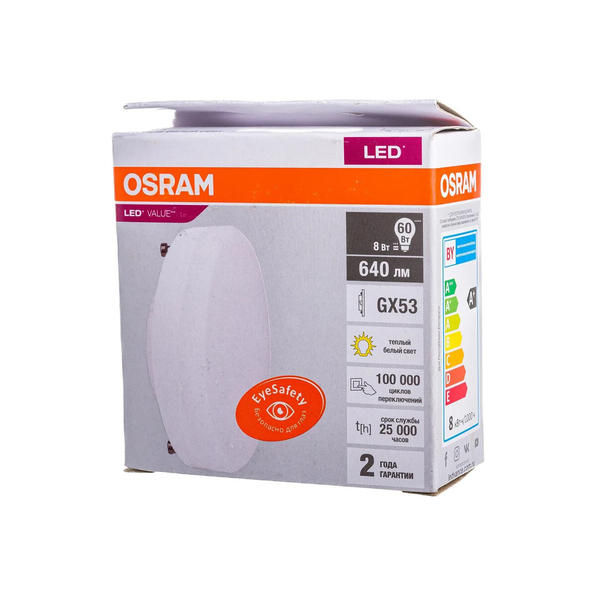 Лампочка светодиодная OSRAM LED Value GX, 640лм, 8Вт, 4000К (нейтральный белый свет), Цоколь GX53, колба GX, 1 шт