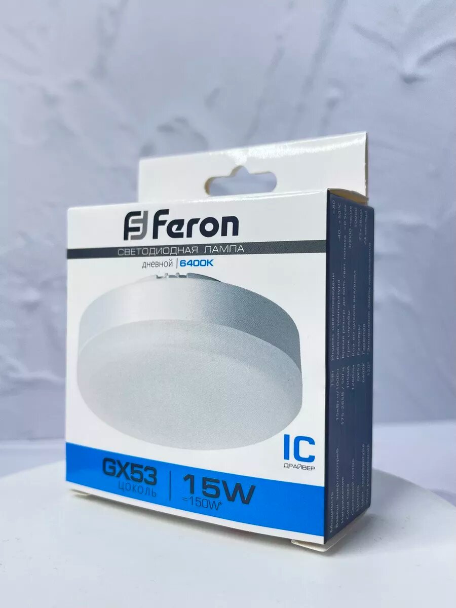 Купить Лампа светодиодная FERON LB-454, GX53, 15W, 6400K, дневной белый свет, 5 шт
