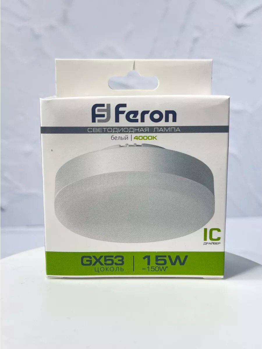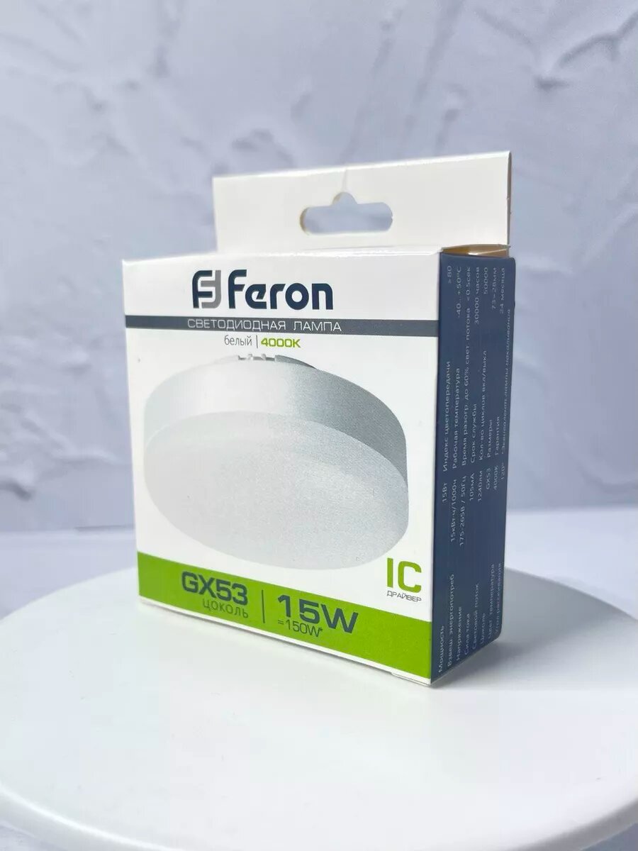 Лампа светодиодная FERON LB-454, GX53, 15W, 4000K, белый свет, 5 шт