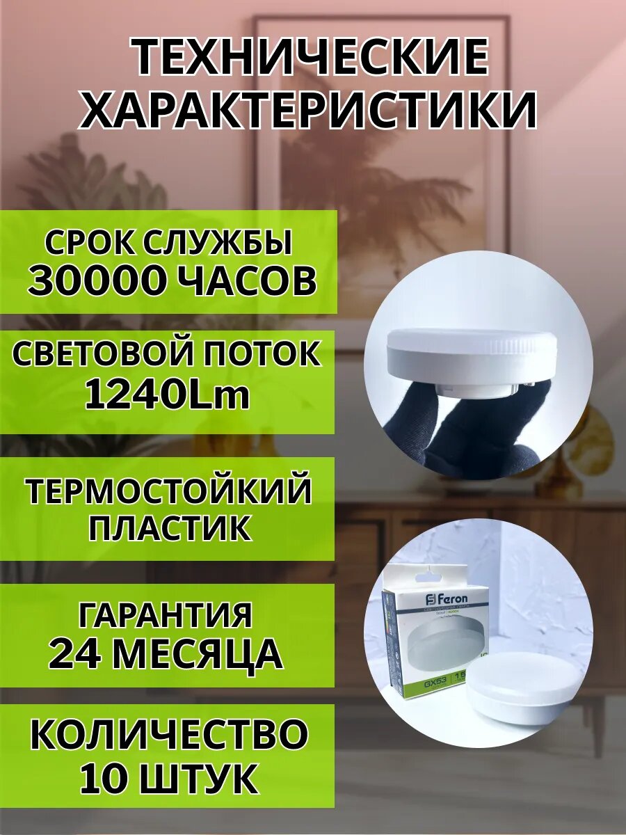 Купить Лампа светодиодная FERON LB-454, GX53, 15W, 4000K, белый свет, 10 шт