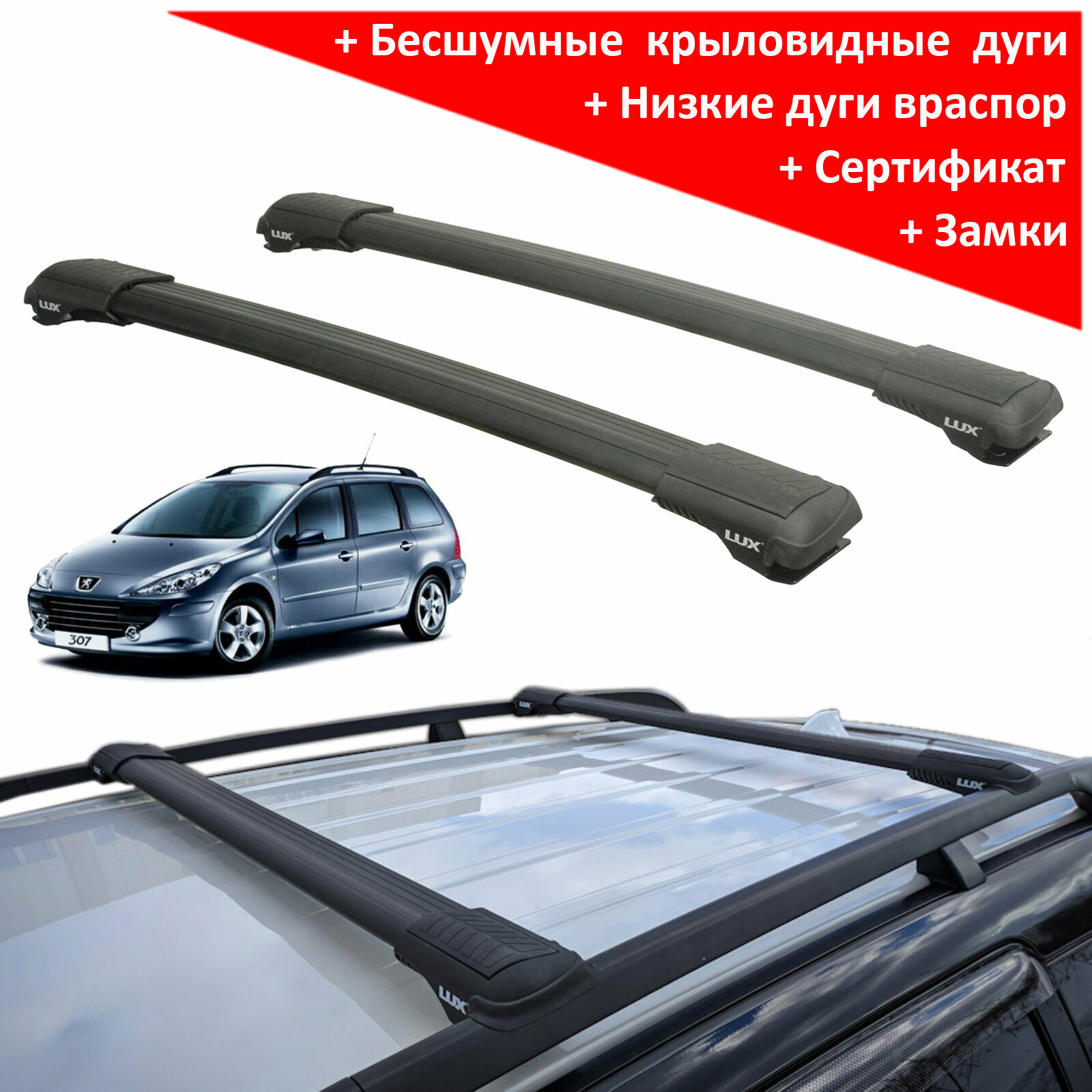 Багажник на рейлинги LUX HUNTER / Люкс Хантер для Пежо 307 СВ Универсал 5дв. 2002-2008 крыловидная дуга с замком, черная L44-B (791866)