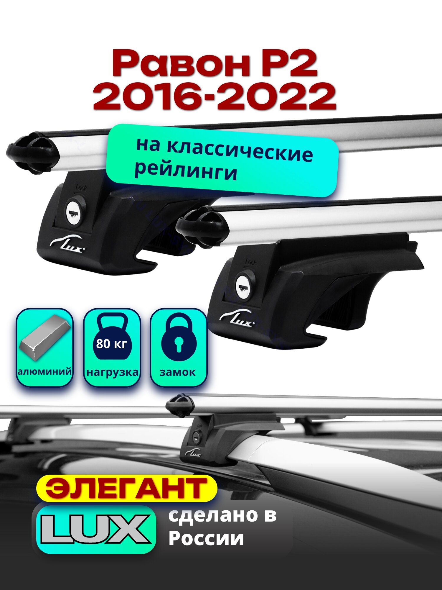 Багажник на крышу LUX элегант с замками дуги аэро-классик (53мм) 1,2м Равон Р2 2016-2022 , а:LUX.0250