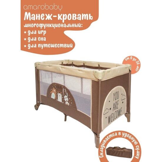 Купить Манеж Amarobaby MULTIFORM Smile Friends бежевый