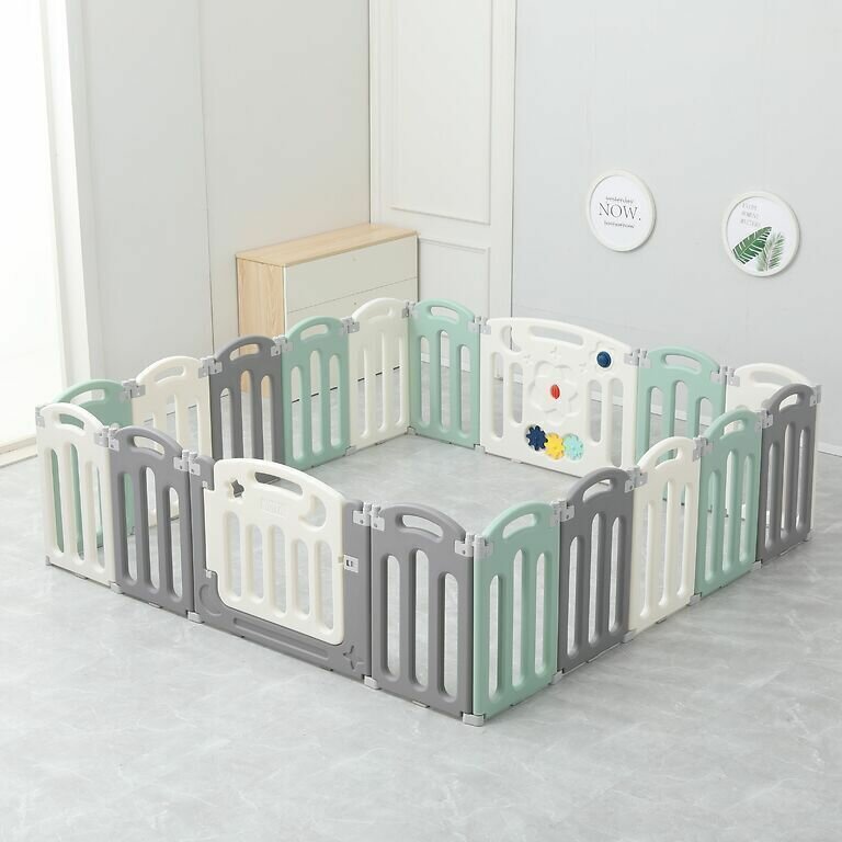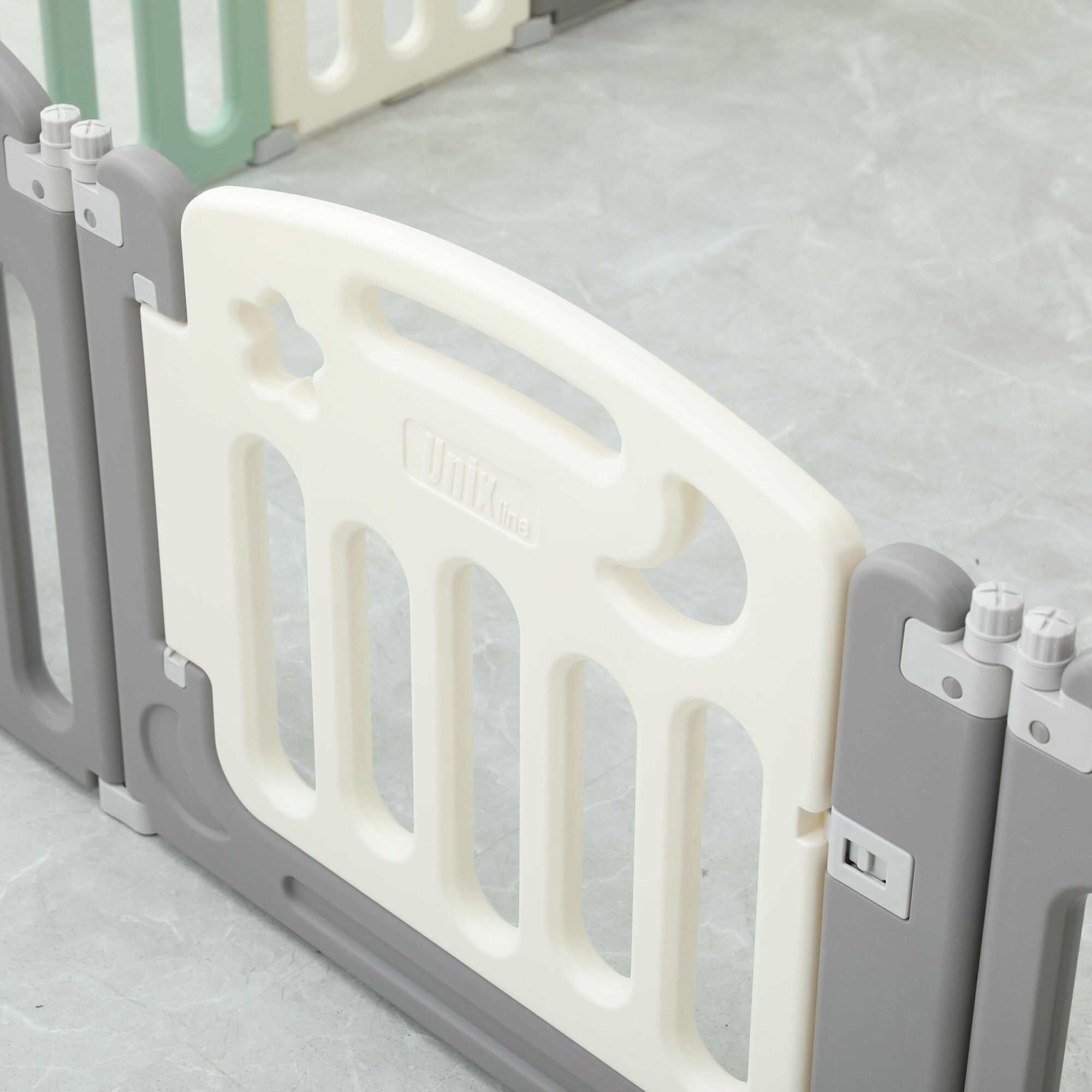 Манеж UNIX Kids "Simple" Color, серый/белый/зеленый, 188x151 см, большой детский игровой манеж из пластика, игровой комплекс, для дома, для улицы
