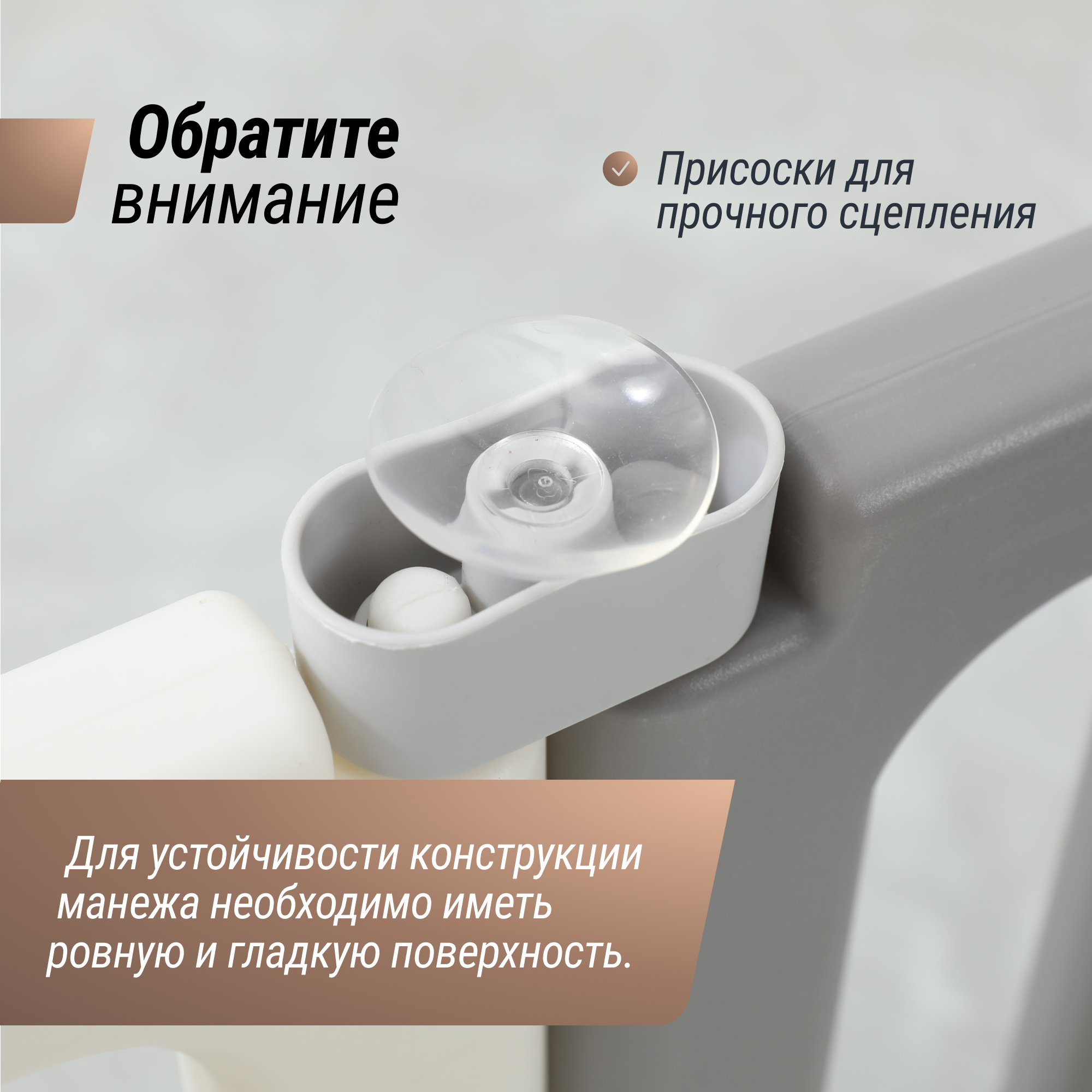 | Минусы: | Бизиборд - одно название… стенки не фиксируются присосками и антискользящими накладками из комплекта, ребёнок 7 месяцев уже их сдвигает (не сильно, но тем не менее), гайки периодически надо подкручивать. Манеж расползается во все стороны, ребёнка даже на 5 минут особо в нем не оставишь одного. Купили дополнительно антискользящие стопы, помогает, но не 100%. |