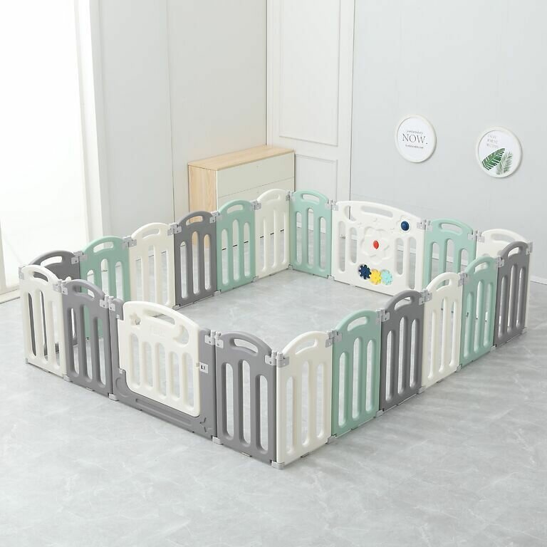 Манеж UNIX Kids "Simple" Color,серый/белый/зеленый, 225х188, большой детский игровой манеж из пластика, игровой комплекс для дома, для улицы