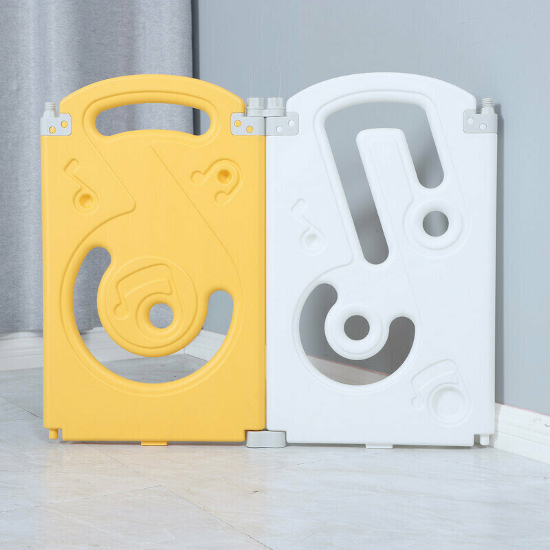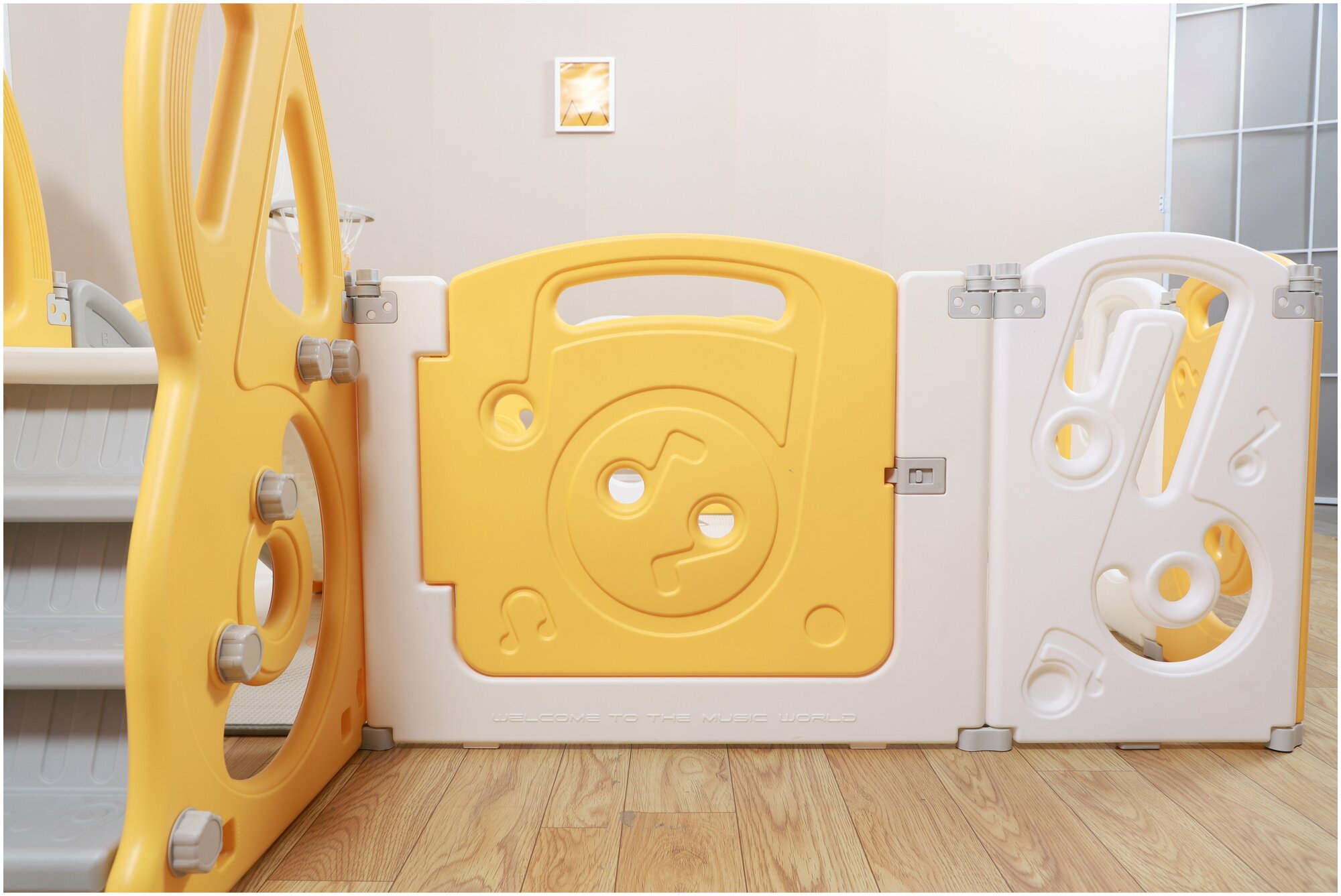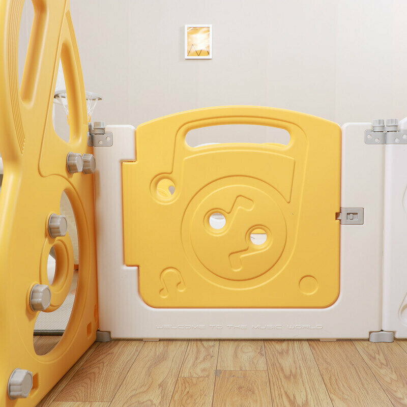 Манеж UNIX Kids "SUPREME Music" Yellow, желтый/белый, 160x160 см, с ковриком, горкой и баскетбольным кольцом для дома и улицы