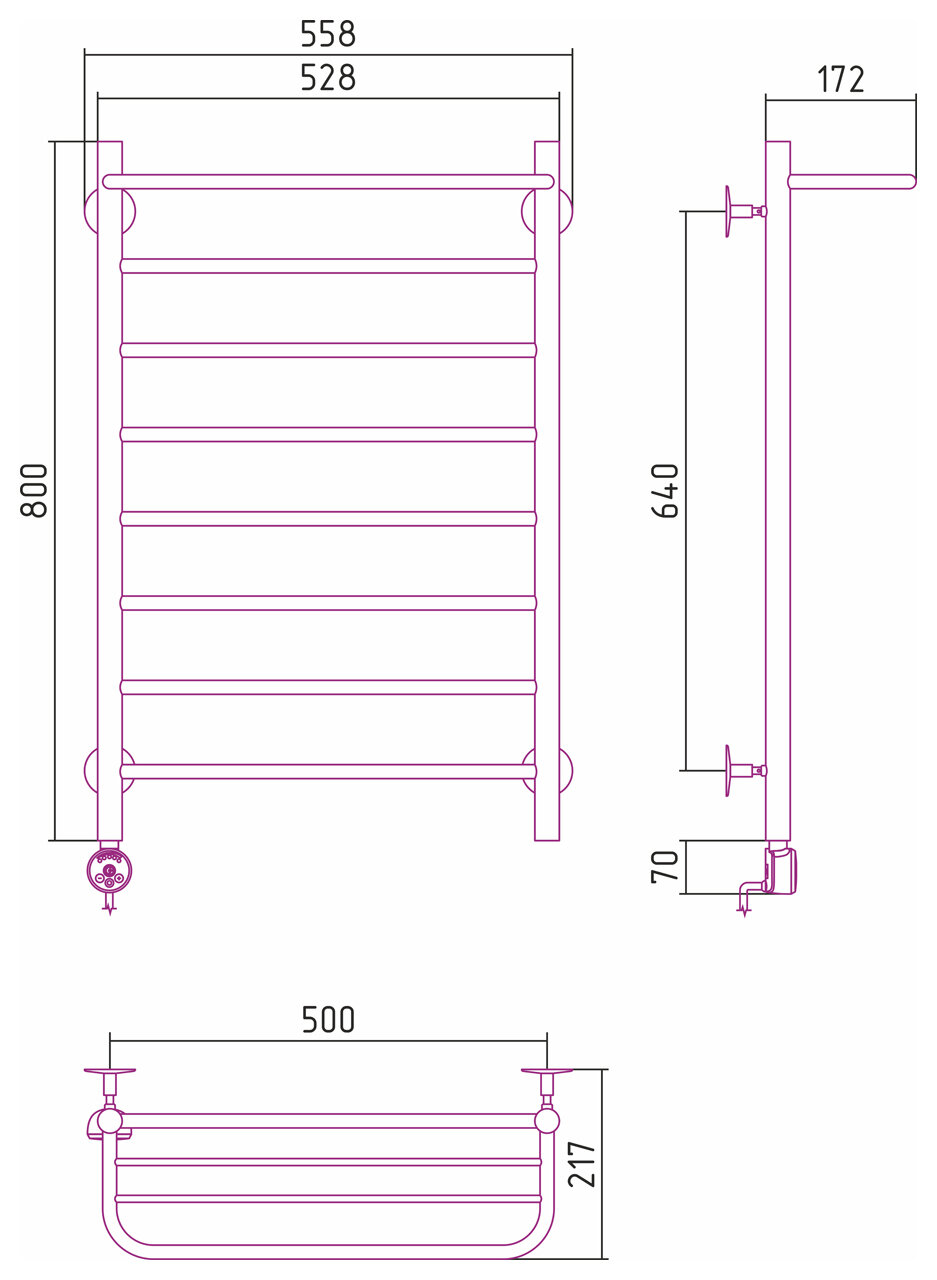 Купить Полотенцесушитель электрический Стилье Формат 20 ТЛ 800х500 (Полка + 7) П16 Без покрытия 00521-8050