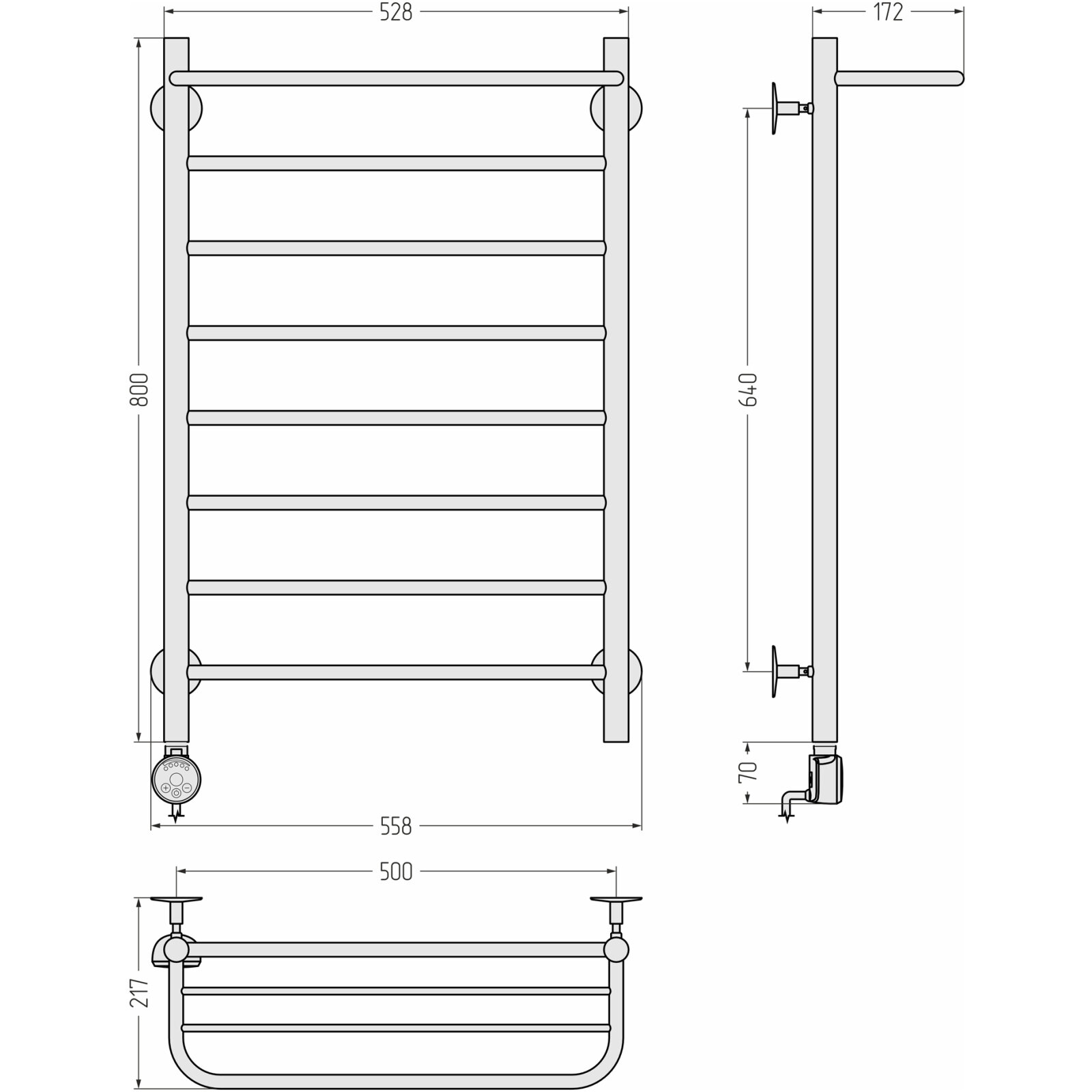 Полотенцесушитель электрический Стилье Формат-20, 800х500, с полкой, ТЭН справа 00520-8050