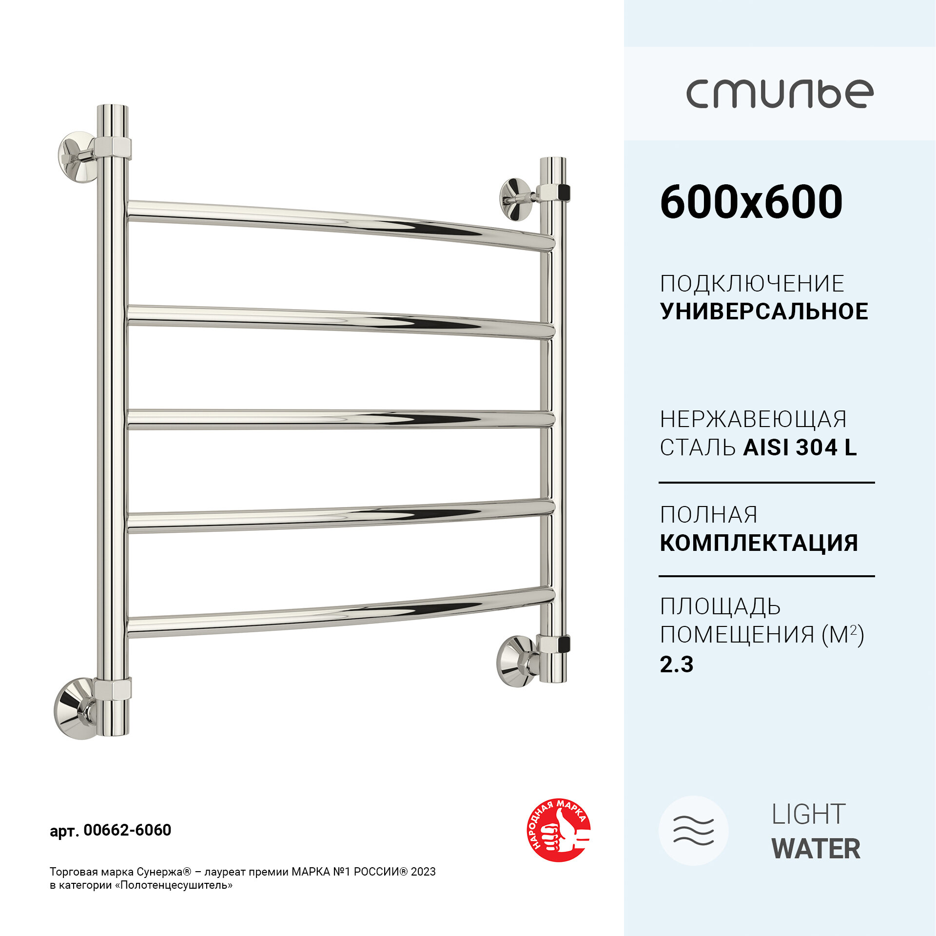 Полотенцесушитель водяной Стилье Аксиома-20, 600x600, выгнутая, нержавеющая сталь 00662-6060
