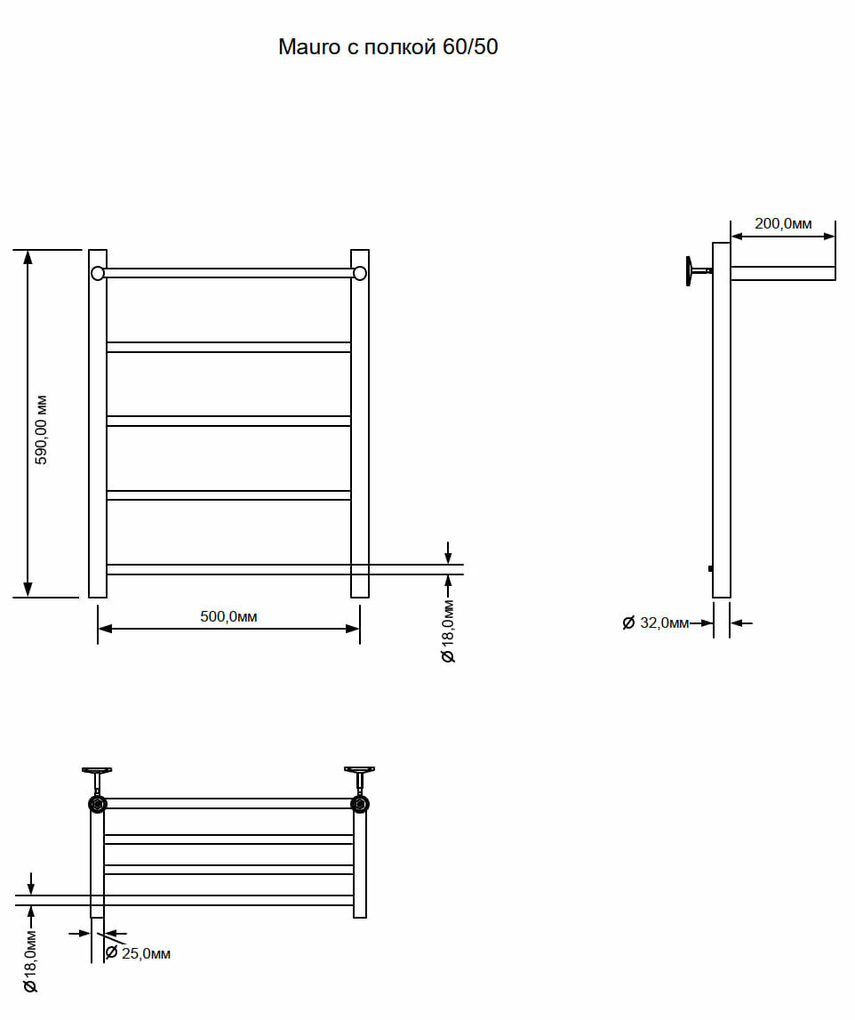 Полотенцесушитель электрический Aquanet Mauro 60х50 Тэн справа , с полкой, 282006, хром
