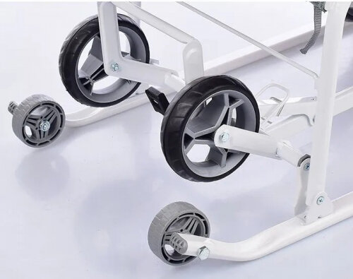 | Минусы: | На колёсах ехать удобно только прямо, поворачивает коляска очень туго |