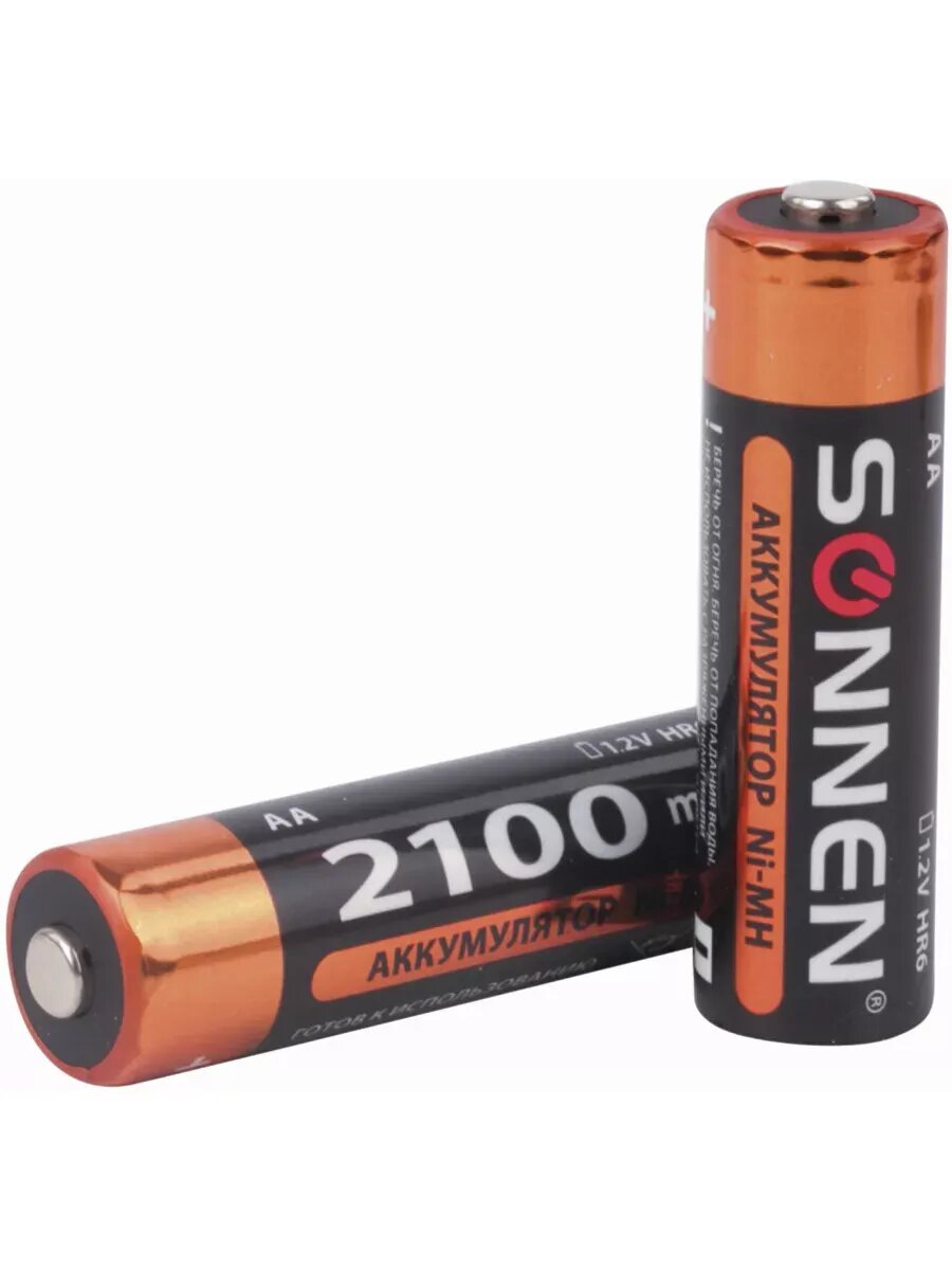 Батарейки аккумуляторные комплект 2 шт., SONNEN, АА (HR6), Ni-Mh, 2100 mAh, в блистере, 454234 В наборе: 1компл.