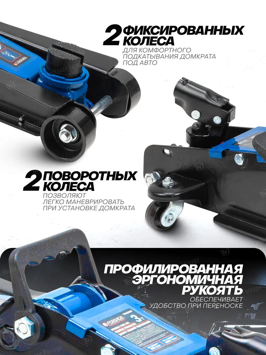Подкатной гидравлический усиленный низкопрофильный домкрат 3т Forsage F-T830031BS