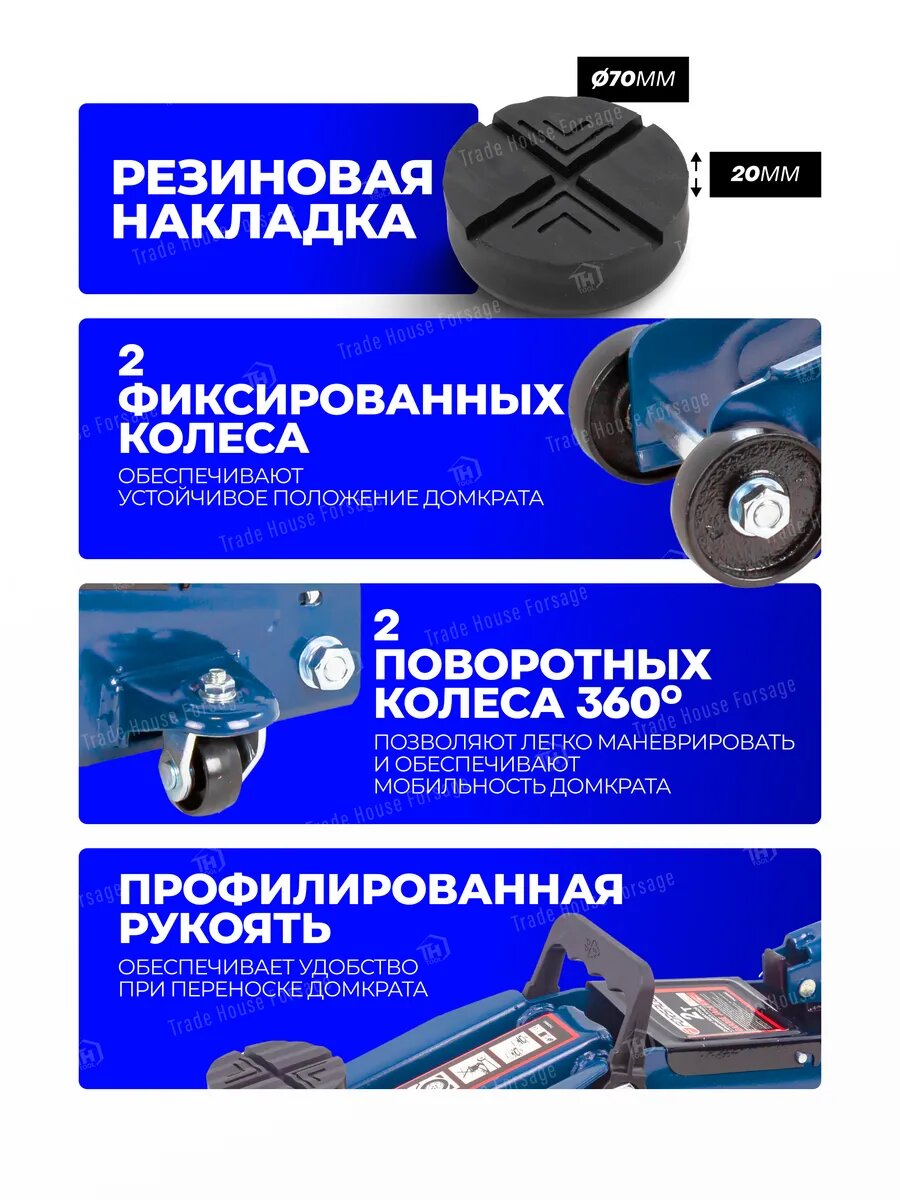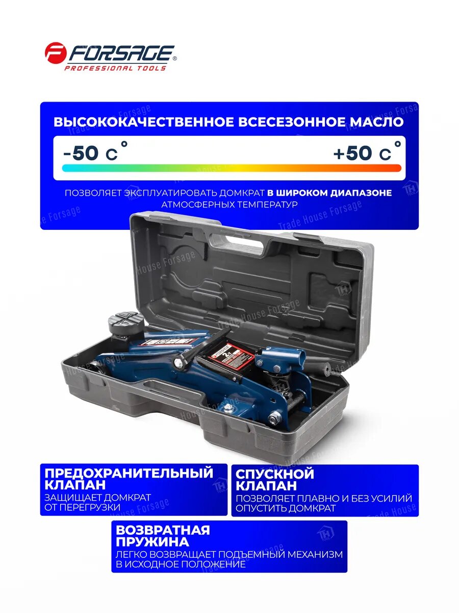 Forsage Домкрат подкатной 2т. h min 130мм, h max 330мм. с комплектом аксессуаров F-TH12074(6308)