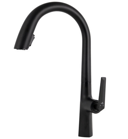 Смеситель для кухни с выдвижной лейкой KAISER Strike 09066-2, цвет черный матовый