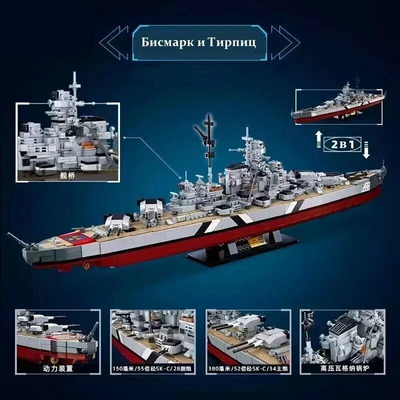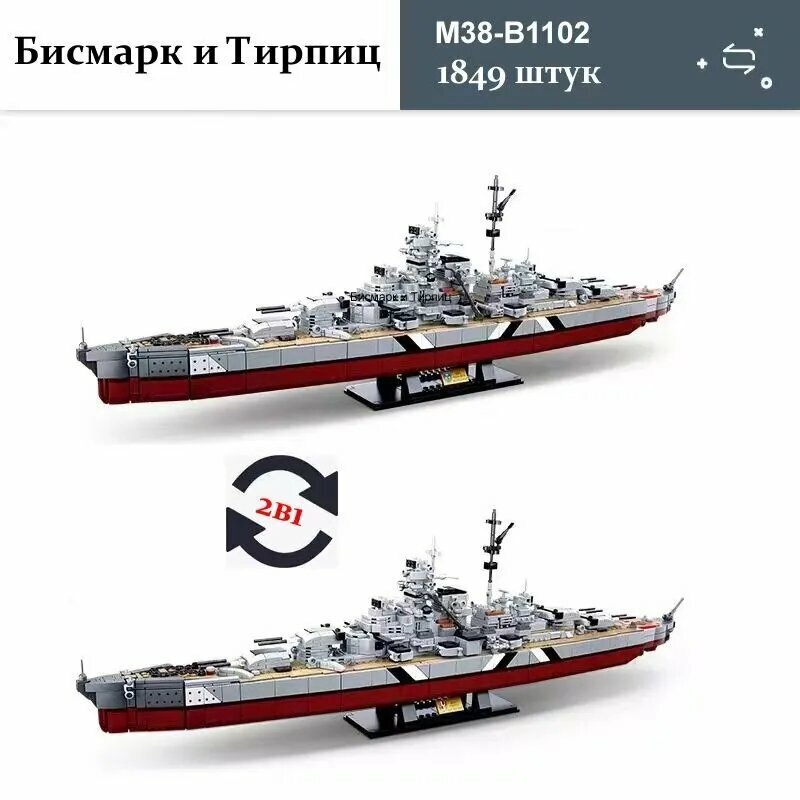 Купить Конструктор SLUBAN серия "Армия"/ Военная техника / Корабль линкор Бисмарк M38-B1102 пластиковый, детский для мальчиков (1849 деталей)