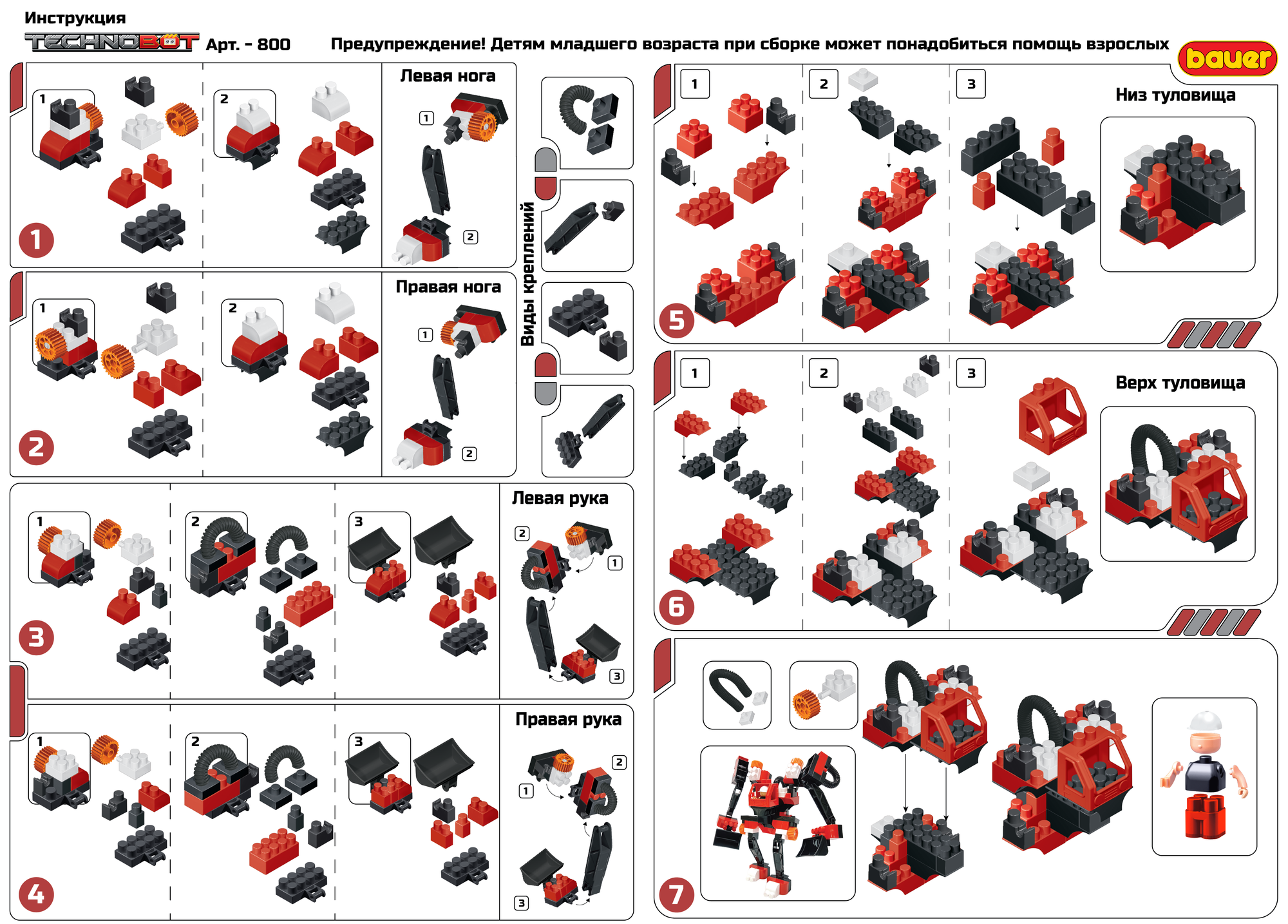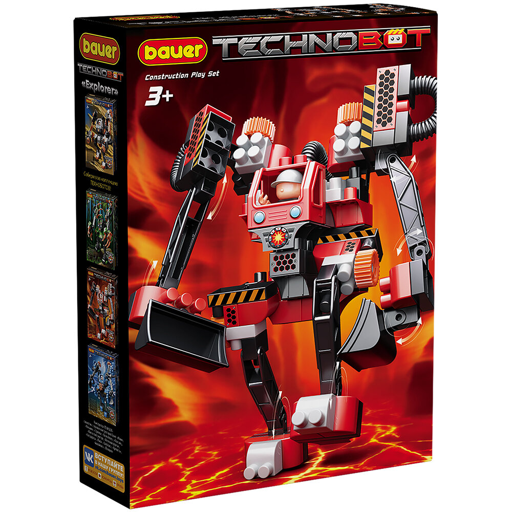 Bauer Конструктор Bauer 800 Technobot Набор с большим роботом и пилотом (цвет чёрный, красный) .