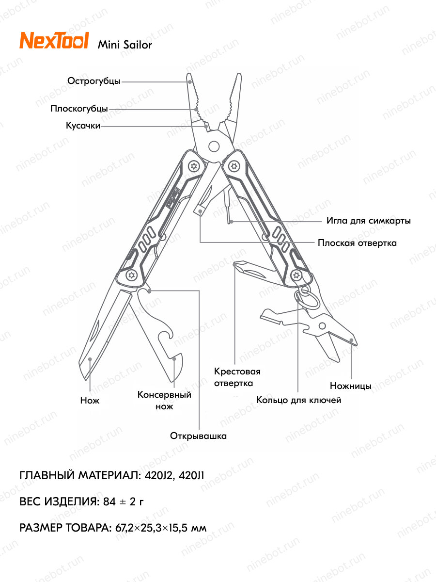 СохранитьМультитул NexTool Mini Sailor Functional Pliers 10 in 1 NE20135A (черный) интересное: