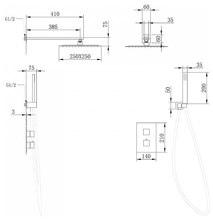 | Форма верхнего душа | квадратная |