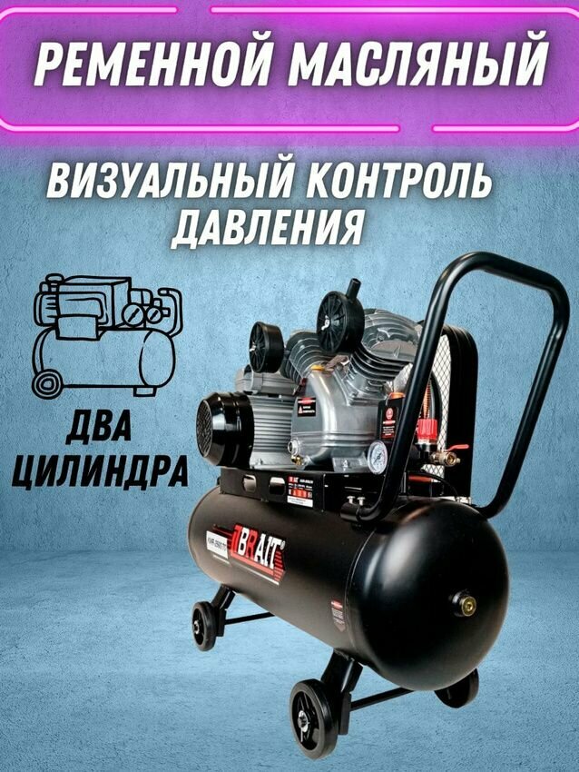 Компрессор BRAIT КМ-2200/50х2, 50 л, 2.6 кВт