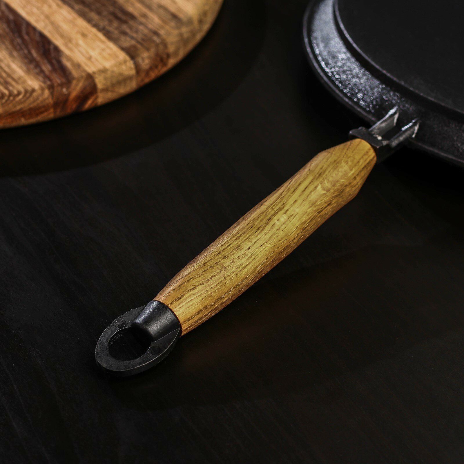 Сковорода блинная литая чугунная Magma, d 24 см, h 1,5 см, деревянная ручка