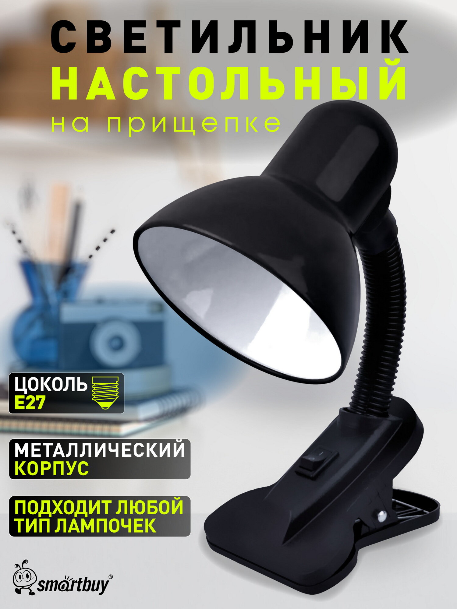 Настольный светильник Smartbuy Е27 с прищепкой черный, в пакете
