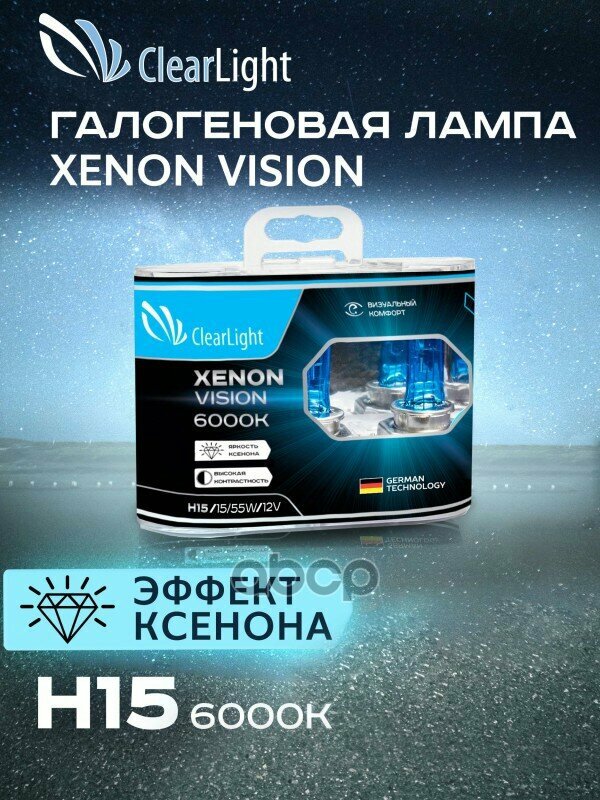 Купить К-Т Ламп H15 Xenonvision 12V-15/55W Галоген (2 Шт.) ClearLight арт. MLH15XV