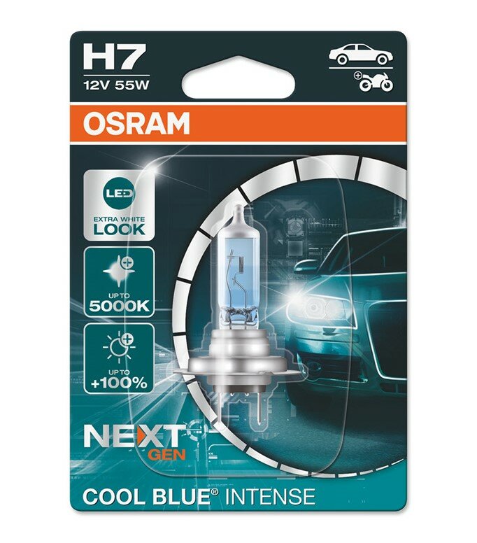 лампа галоген 12v h7 55w px26d osram cool blue intense +100% nextgen 5000k 64210cbn