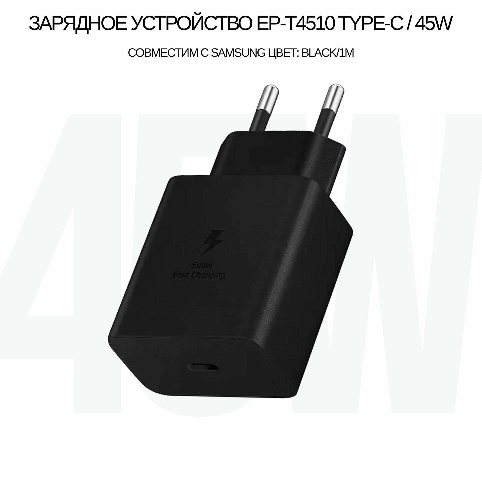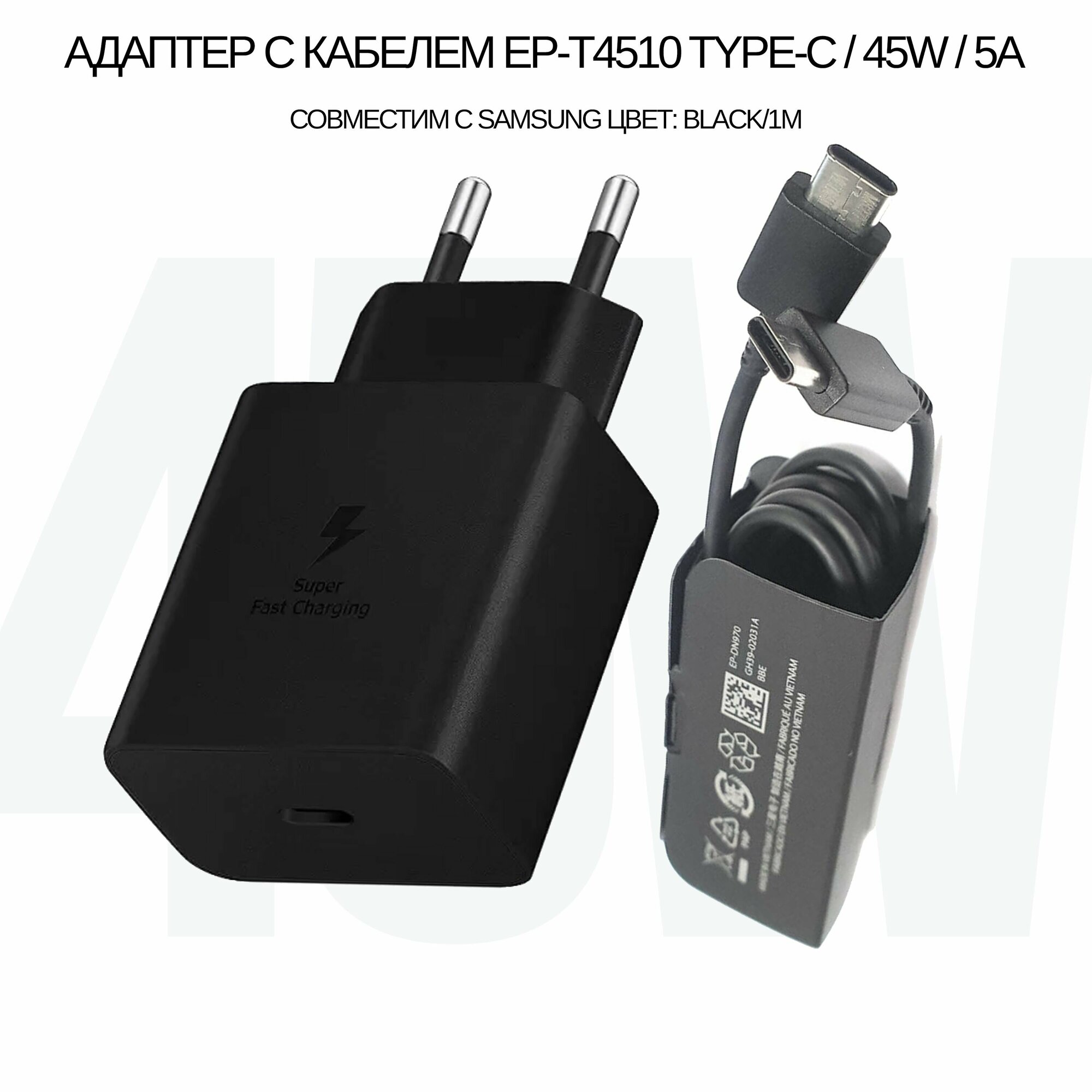 Ниже Вы можете прочитать отзывы на Зарядное устройство EP-T4510 в комплекте с кабелем 45W/5A с функцией быстрой зарядки Fast Charger для Samsung Type-C входом (цвет: Black), ознакомится с подробными характеристиками, посмотреть интересные обзоры и фотографии на Зарядное устройство EP-T4510 в комплекте с кабелем 45W/5A с функцией быстрой зарядки Fast Charger для Samsung Type-C входом (цвет: Black).