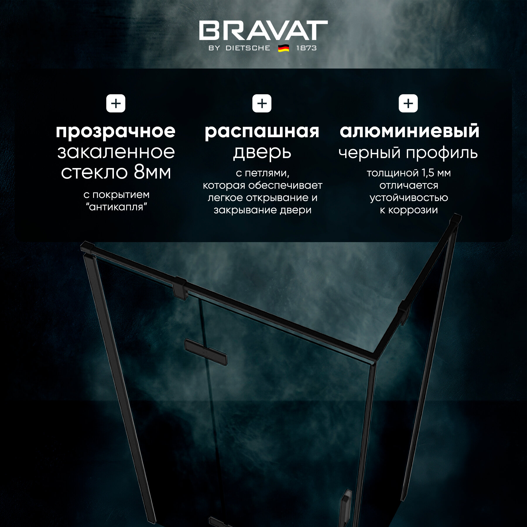 Душевой уголок Bravat "Blackline" BS120.3112AB L, прозрачный, антиизвестковое стекло интересное: