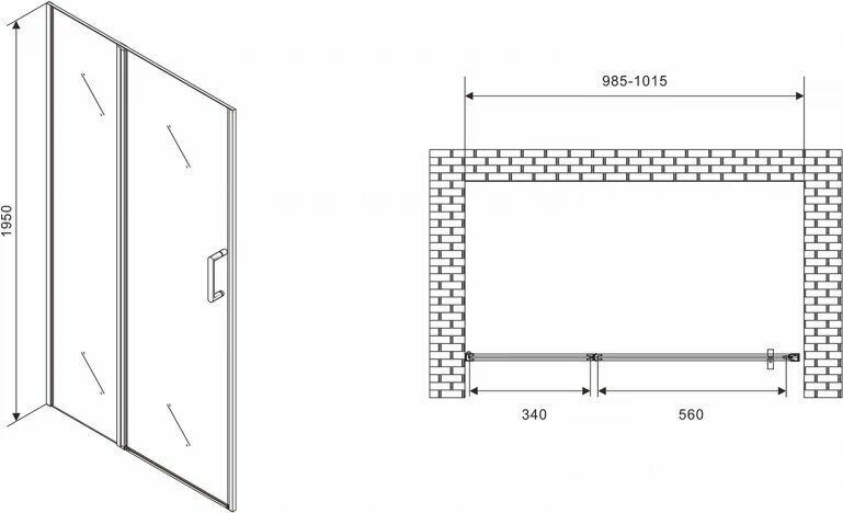 Душевая дверь в нишу Abber Sonnenstrand 100x195 AG04100BS стекло прозрачное, профиль черный